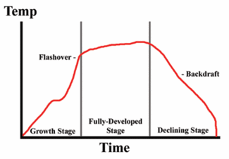一场火已经开始燃烧,它可能有也可能没有热辐射反馈闪过,但它已经消耗了房间里的东西,现在通过使用房间里所有可用的氧气“燃烧自己”。空气中正常的氧气含量大约是21%。低于14%,可见火焰减少。房间里的东西处于着火温度,当氧气被引入时,就会燃烧起来,炽热的气体会以爆发力点燃。这是回调。爆炸力是空间中过热气体的数量和氧气引入的数量的结果,在此发生的反抽。爆炸的力量可以打破窗户,撞倒墙壁,伤害消防队员。