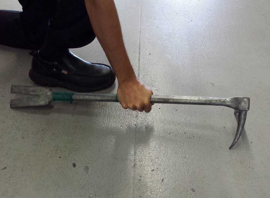 如果搜救队只携带手动工具,而不携带带电的长筒袜,则将使用这些工具来检查地板的完整性和稳固性。haligan工具最适合这种类型的操作,因为它可以作为一个指示器。如图2所示,握着哈利根,当有地板的时候,手就会从地板上抬起;当那里没有地板时,手会被捏住,因为哈利根的顶部与地板表面齐平。如果使用斧头作为搜索工具,需要将斧头的头敲打在地板上,以确保完整性和存在感。与使用哈利根相比,这对于搜救队的消防队长来说不是很实际。斧头最好用于清扫地面,而不是用作主导工具。
