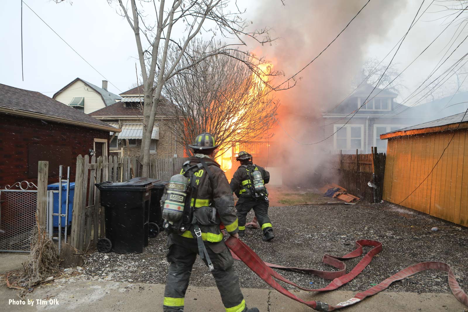 火灾摄影师Tim Olk分享了一些芝加哥火灾现场的照片,这场火灾导致一名男子严重受伤。