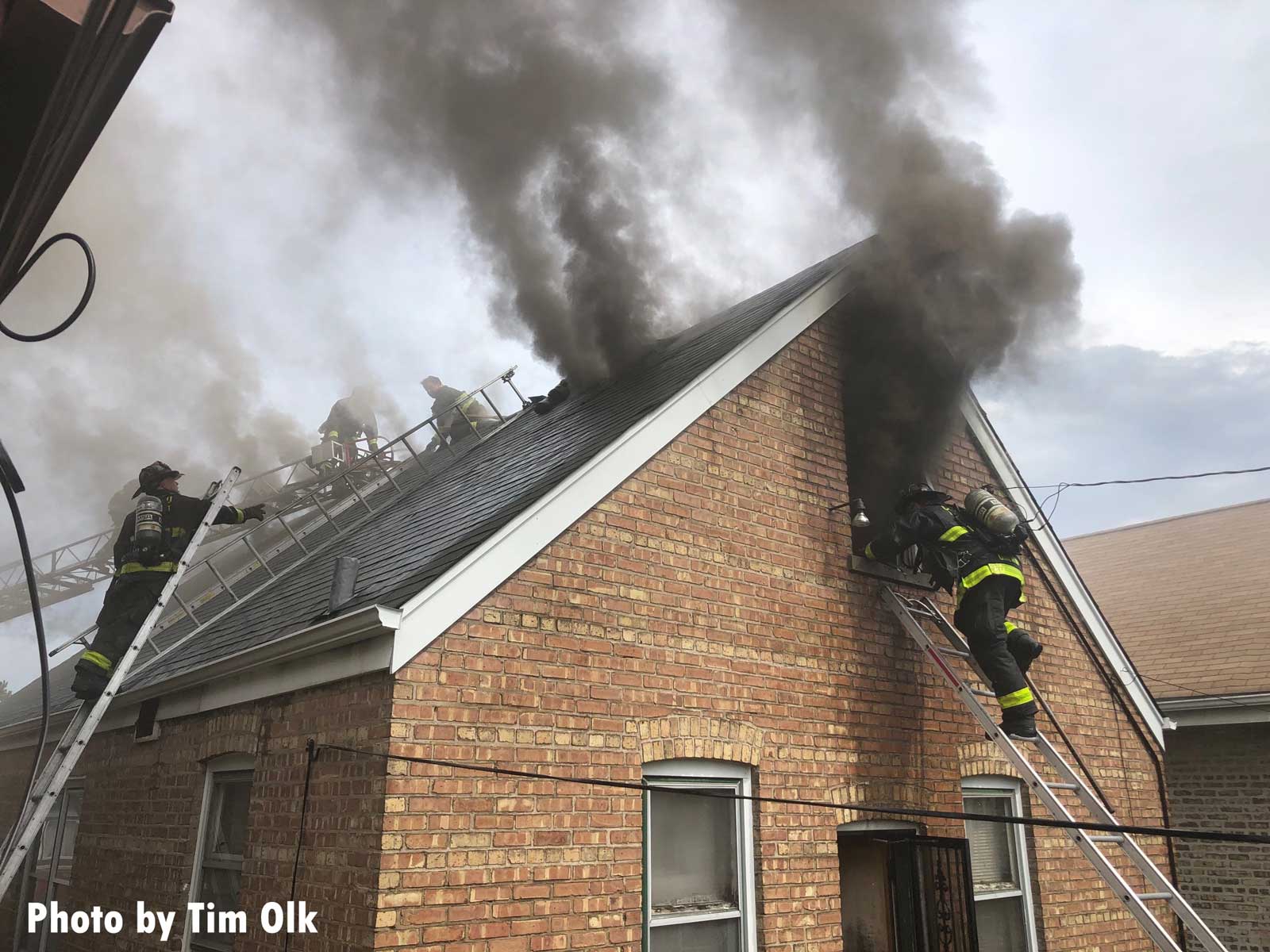 火的摄影师蒂姆Olk分享了一些芝加哥消防员在最近的一场房屋火灾中工作的照片。