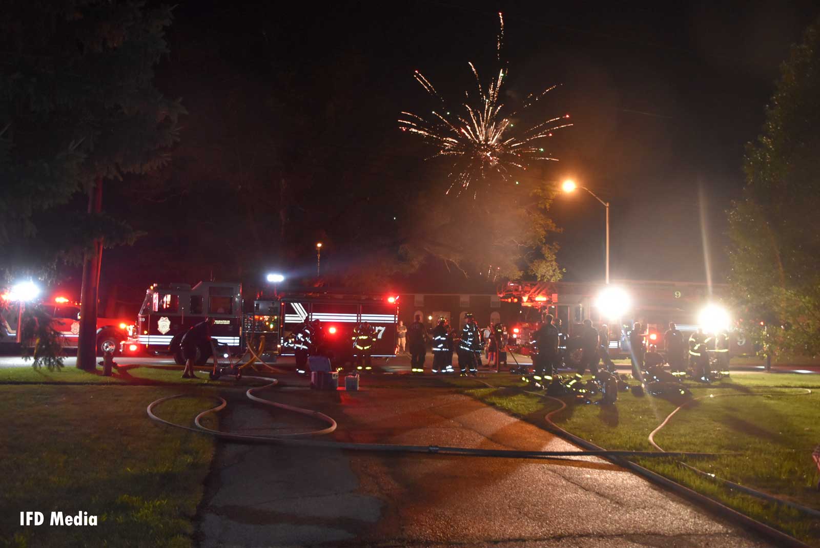 独立日,印第安纳波利斯消防部门(IFD)消防员在大约20次垃圾火灾,五辆车火灾,两棵树火灾和数十个呼叫的调查中回应,一切都被认为是烟花相关的。