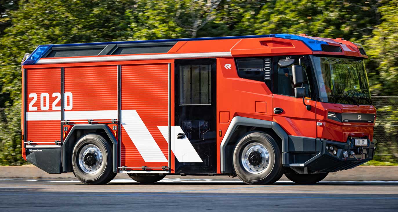 Rosenbauer is the world’s leading manufacturer of firefighting vehicles and equipment. The RT is the first fire truck to incorporate an all-electric drivetrain that eliminates the engine, transmission, and drivelines typically found in a traditional apparatus.