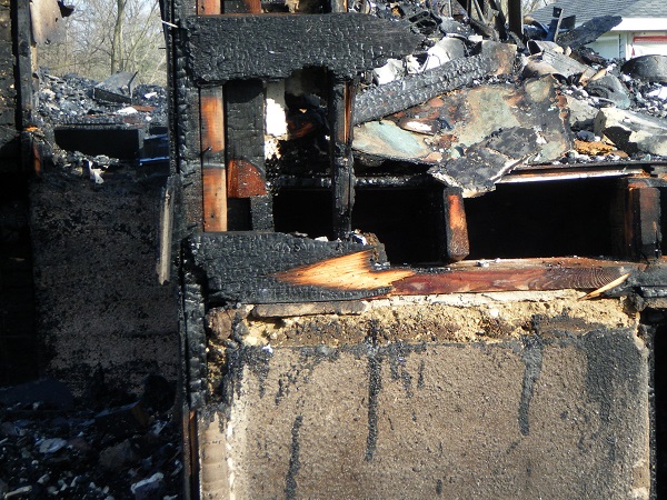 - 木材、人造木材或大量木材构件的尺寸被选择来承载指定的安全系数。当表面烧焦时,木材从承重变为轻质可燃隔热材料(木炭),没有承重能力。当表面烧焦足够多(且深度足够深)时,大火就会烧穿安全系数,结构构件就会倒塌。