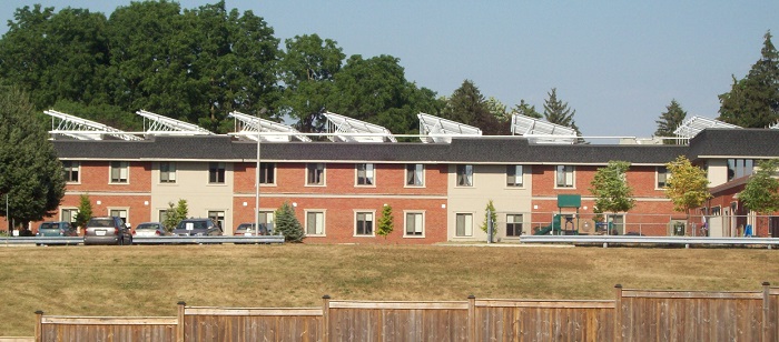 图二是一个覆盖着太阳能电池板的养老院屋顶。随着养老院和住宅安装的太阳能电池板的数量,垂直通风的可用空间被移除。