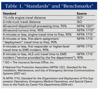 消防服务可以用作基准“标准”,如表1中的标准,并且我们开发其他标准是至关重要的。