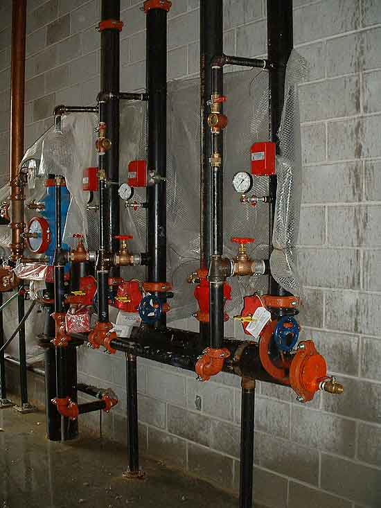 - 三个四英寸洒水喷头,每个阀门,压力表和主排水管,以及服务的独立部分;和