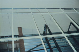 This gypsum-board fire barrier is supposed to stop fire moving from one store to the next in a strip mall. Elongation of the steel bar joist would tear out the gypsum board.