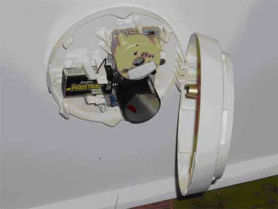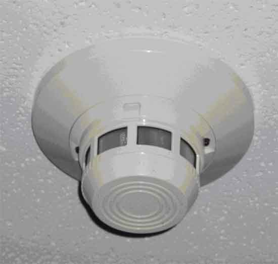 (2) A typical single station smoke alarm. Note the power supply, sensor, and sounder.Click to enlarge