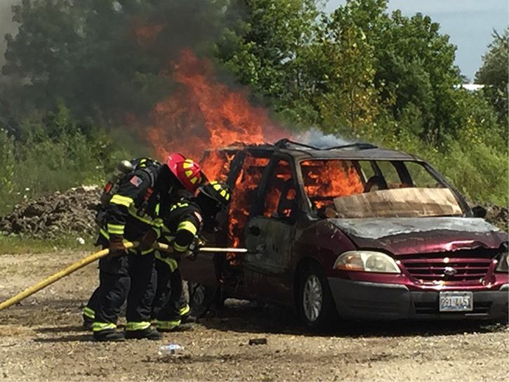 视频:迈阿密戴德消防新兵现场燃烧训练