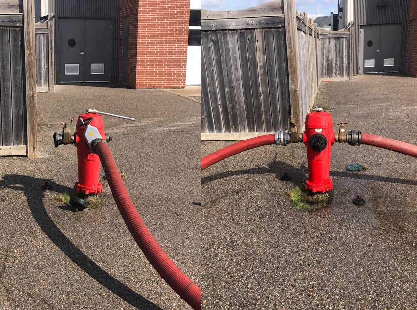 - 检查消火栓袋,确保至少有一个额外的端口有足够的闸阀。为了便于连接和部署,确保大型软管供应管线上有连接的闸阀。