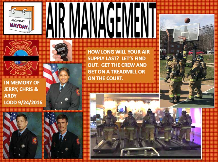 无论如何,你的空气供应的重要性不能被夸大。事实上,请收听本月的播客,威尔明顿消防队员布拉德·斯皮克曼谈论在等待救援人员时控制呼吸以保存空气。点击下面的播客。