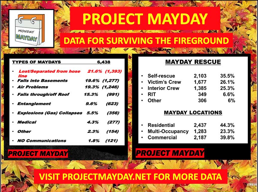 提交给该项目的资料显示了自我生存技能的重要性。大部分发现自己处于求救状态的消防员都能够进行自我救援。349名消防员被快速干预队(RIT)救起,数据支持了对快速干预队(RIT)的需求。