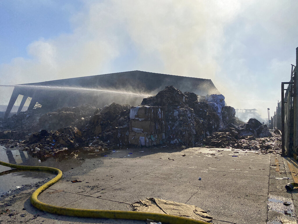 凤凰城,亚利桑那州。(美联社)-周日消防队员仍在现场凤凰城发生大火它咆哮着穿过多个回收场,摧毁了几家企业,并导致一名消防员受伤。