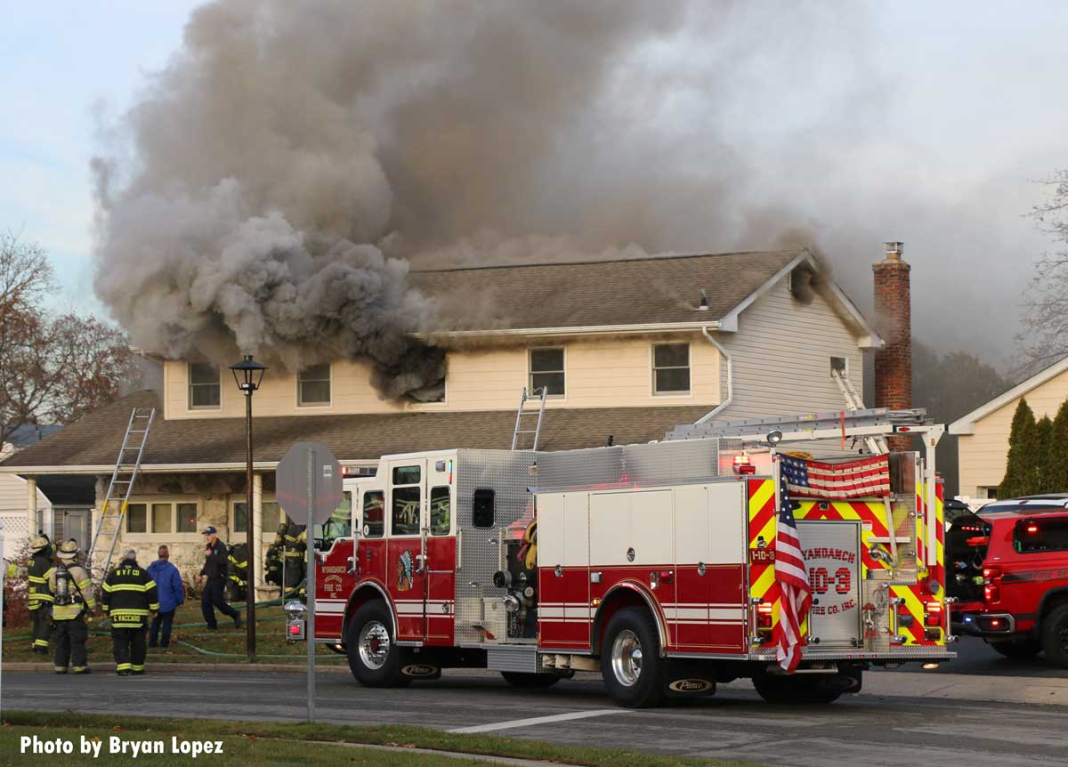 2021年12月1日,星期三,长岛鹿公园(纽约)消防部门接到了Milleridge Drive住宅建筑火灾的警报。