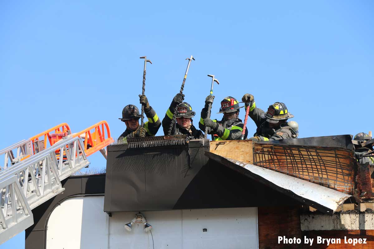 FDNY指挥单位到达,寻找从栏杆墙上的火灾,延伸到两层纳税人的屋顶。火灾迅速被船员击倒,没有报道伤害。