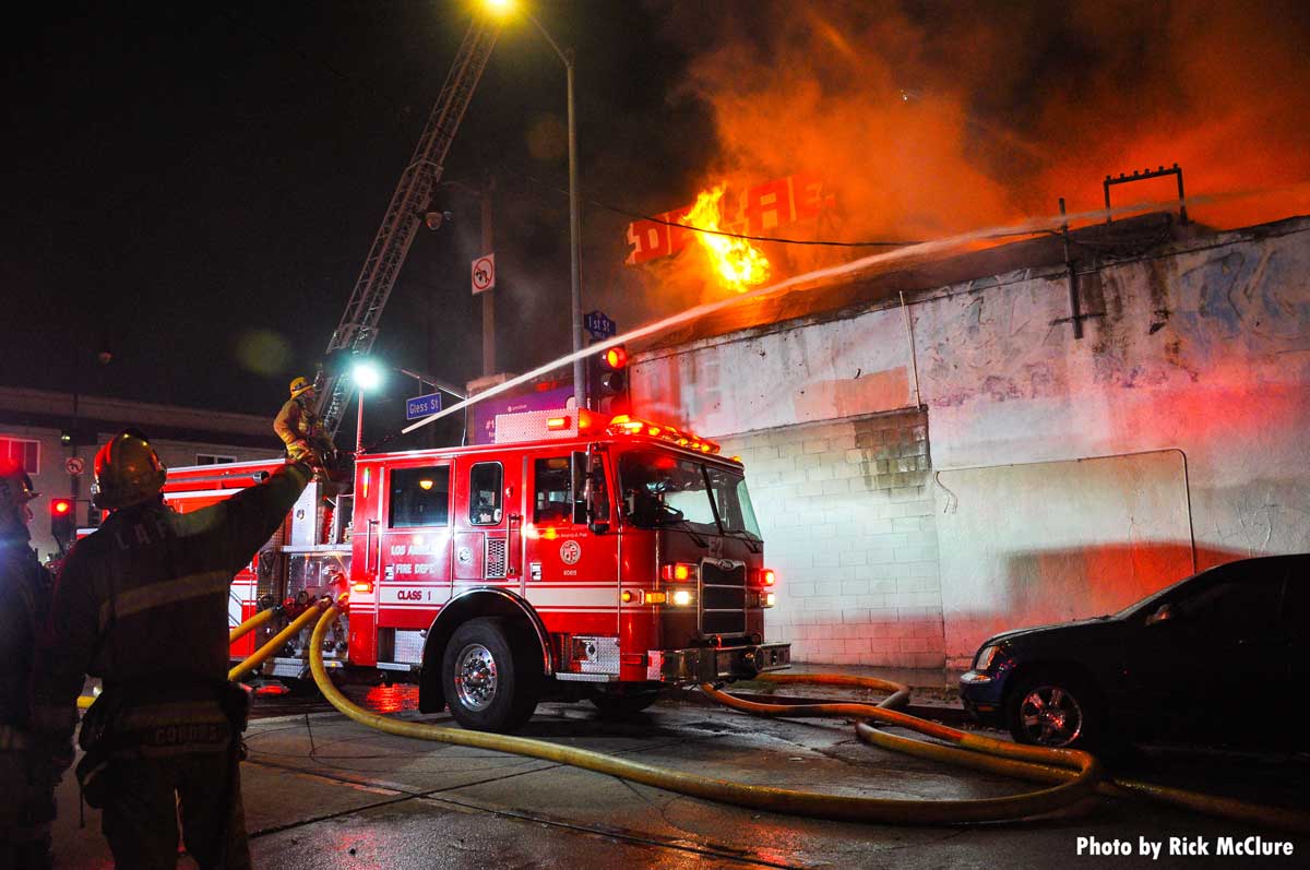 消防摄影师瑞克麦克鲁克分享了一些相片洛杉矶市(加利福尼亚州)消防局(LAFD)消防队员在商业建筑中回应大火。