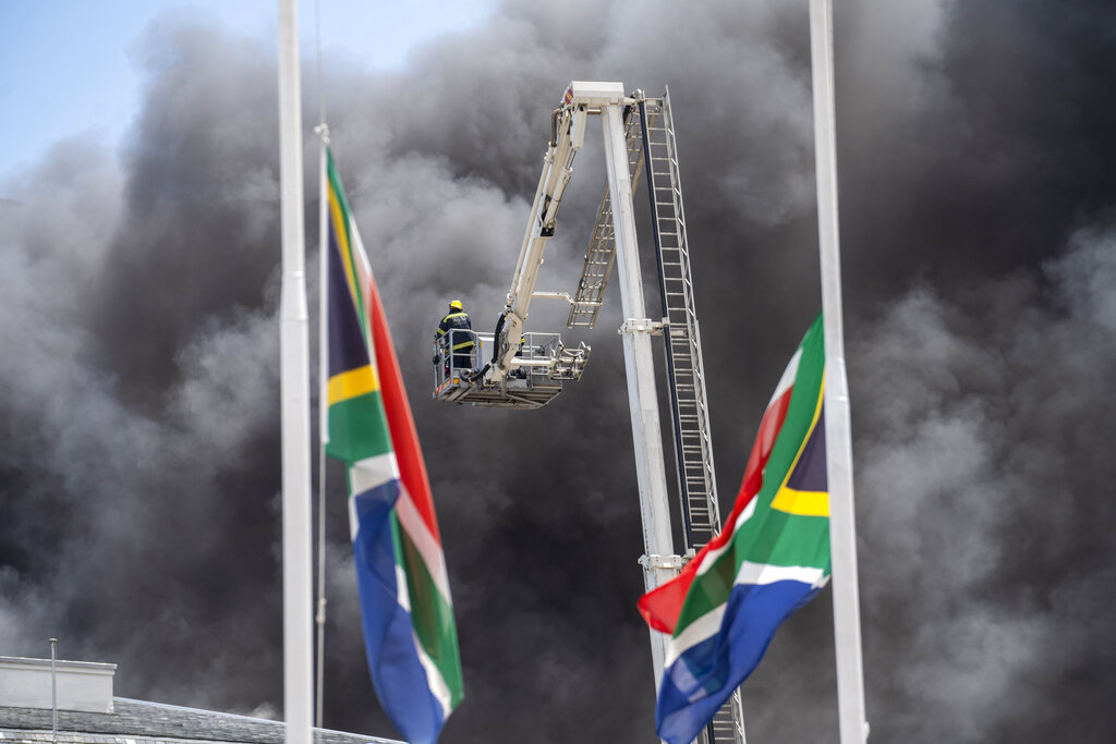 南非开普敦(美联社)——消防队员仍在继续工作南非国家议会大楼一天前,一场大火烧毁了开普敦的建筑,造成了广泛的破坏。