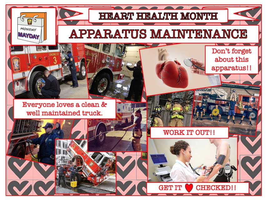 欢迎来到一年一度的五月天心脏健康版。今年的主题是器材保养。每个消防部门都有两项宝贵的资产:1)消防车和2)消防员。