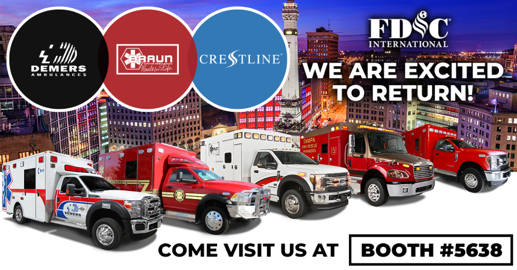 Demers Ambulances, Braun Ambulances, and Crestline Coach will be together again atFDIC International 2021in Indianapolis, Indiana, from August 5 – 7, 2021. The ambulance manufacturers will unite in booth #5638 to exhibit various types of ambulance models across the three brands. In addition, Braun Ambulances will launch a new ambulance safety innovation focused on occupant protection.