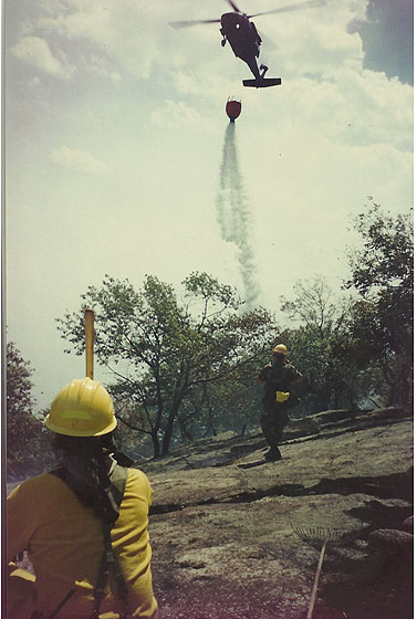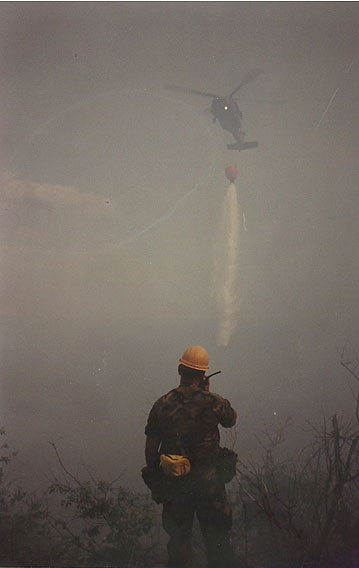 几年前,我亲眼目睹了一个典型的案例场景。我们使用了一架直升机航空单位,四架黑鹰直升机,每架配备660加仑的桶,来攻击一个大型野火.