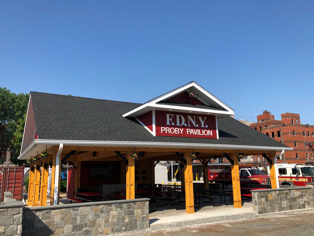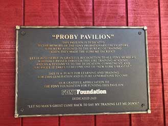 消防学院的最新建筑是“Proby亭”。188博金宝体育1这个功能性的教学空间是为了纪念纽约消防局的实习消防队员,他们在被分配到消防学院时殉职。188博金宝体育1这是对7名消防员的纪念,其中6名在9/11事件中丧生。在Proby展馆内有许多象征性的参考,为这个美丽而实用的纪念性建筑增色不少。这个钢制的教学桌位于展馆的前面,是手工制作的,前面焊接着纽约市的天际线。10张桌子——5张红色和5张黑色——象征着纽约每个行政区的发动机和梯子。前墙上的七块匾上都刻着其中一个的名字试用消防员.旁边有一块牌匾,向所有经过这里的人致敬。天黑后照亮展馆的灯是由消防头盔制成的,每盏灯都有一个前置的门楣。