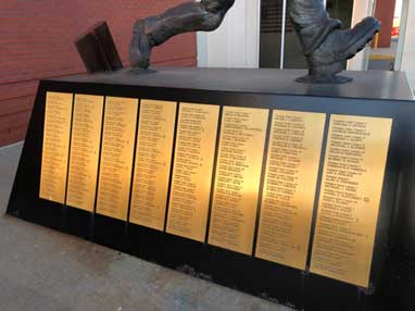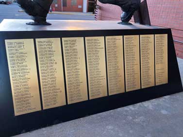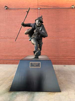 在纽约消防局消防学院的12号楼外,你会发现一座比真人更大的青铜纪念碑188博金宝体育1消防员史蒂文银.尽管2001年9月11日已经下班,但史蒂文和其他许多消防员一样,收拾好装备,朝曼哈顿下城和世贸中心进发。由于路上交通堵塞,史蒂文决定穿过从布鲁克林到曼哈顿的隧道。当双子塔倒塌时,史蒂文就会死。史蒂文的纪念碑代表着343。343名消防员的名字都刻在纪念碑的侧面。史蒂文通过他的英雄行为代表了作为纽约消防局消防队员,无论是在生命中还是在死亡中。