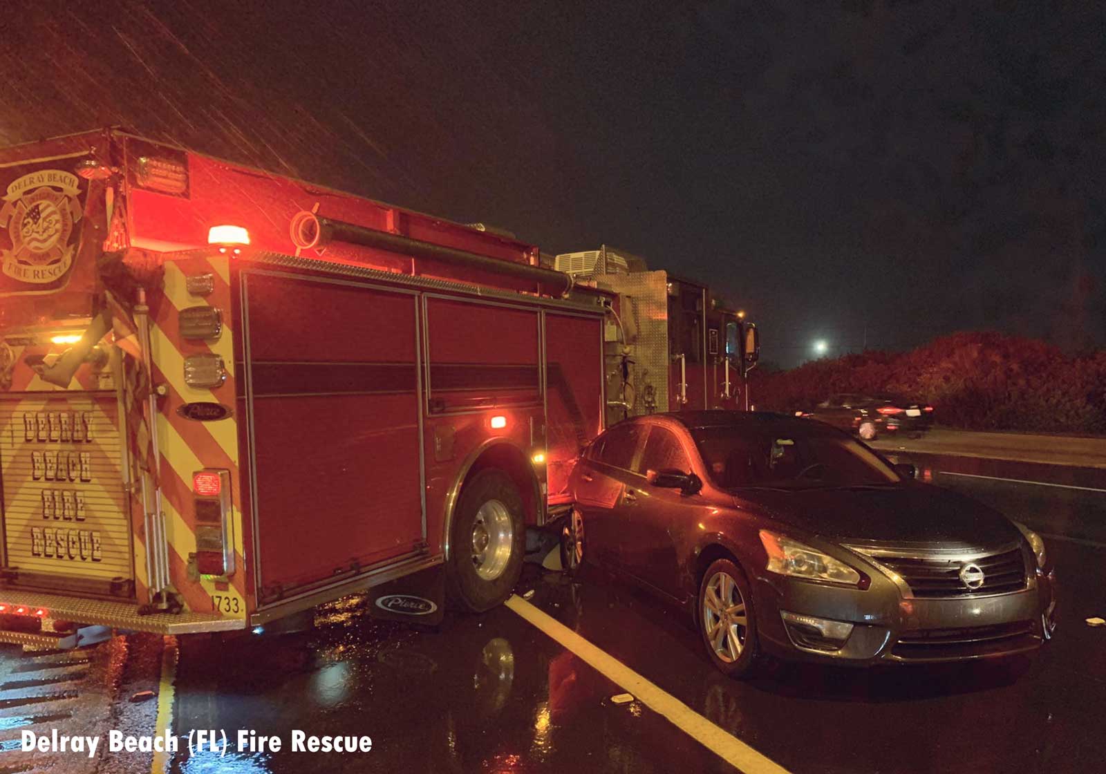 一辆汽车撞到了德雷海滩(FL)火灾设备,同时阻止消防员和医疗机构在碰撞场景中迎面而来。