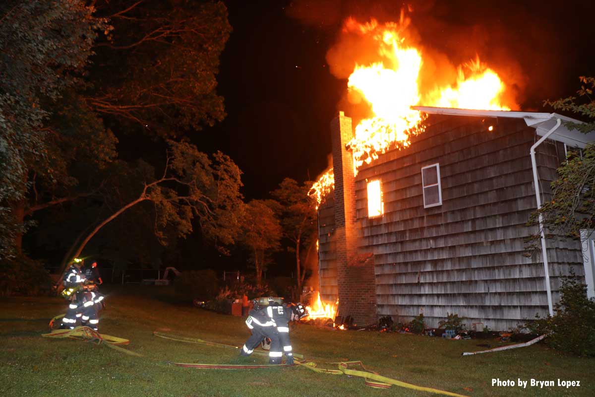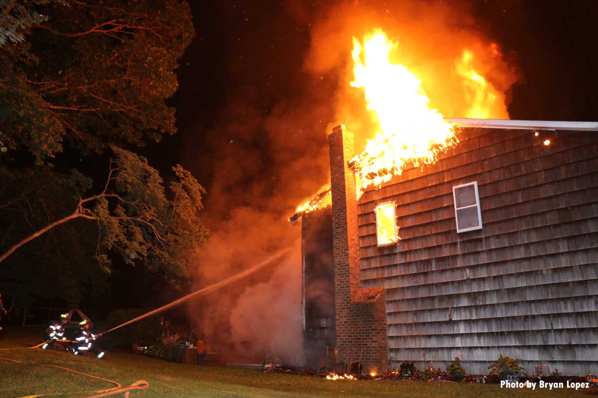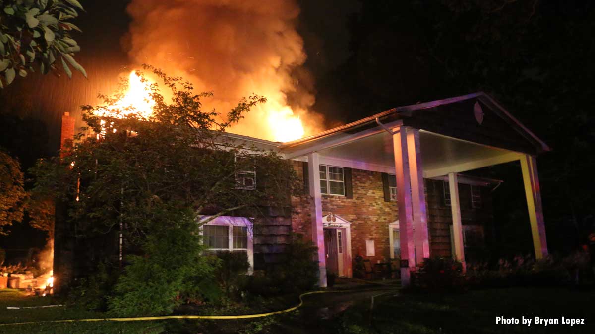 在2021年7月13日星期二的凌晨,迪克斯山(纽约)消防部门接到了半空心路住宅建筑火灾的警报。在到达后,各单位遇到了火灾穿过两层楼的大房子的屋顶,一场正在燃烧的火被指挥传送。