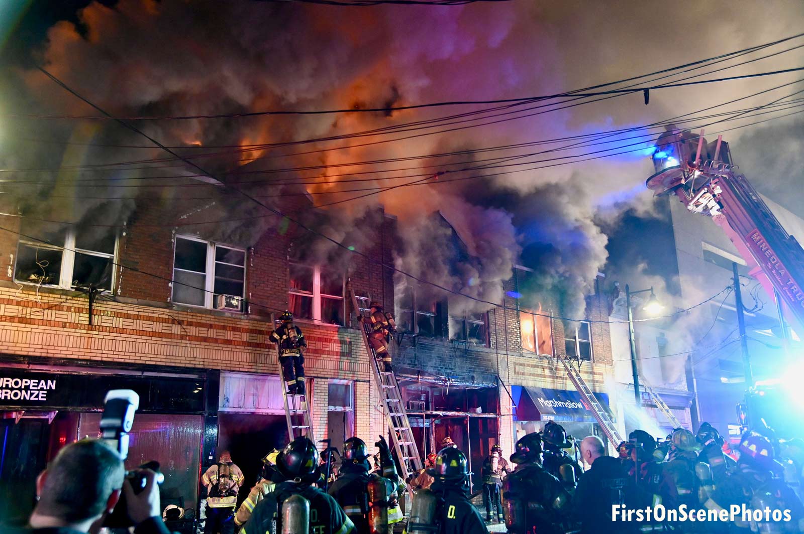3月15日星期天晚上,在Mineola,纽约长岛,纽约的长岛巨大的火灾,遭到损坏或摧毁了多个占用。