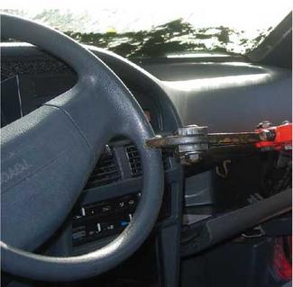 在某些情况下,救援人员可能会操作驾驶员的方向盘或转向柱调整机构,或移除方向盘轮辋的下部,以缓解患者的下肢被困,认识到这种选择可能节省宝贵的时间,否则将用于破折号位移。如果调整机构是不可操作的,开始移除较低的部分的轮辋切割一侧接近轮毂。