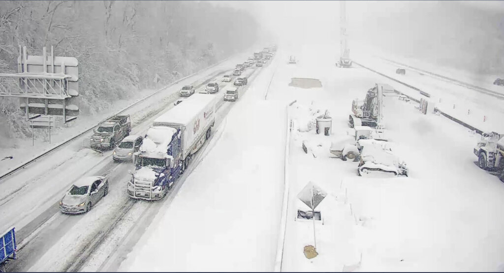 星期一下午发生的这场牵挂车和拖车相撞事故没有造成人员伤亡,但导致美国东海岸南北主要高速公路的交通瘫痪,由于积雪堆积,车辆无法通行。几个小时过去了,数百名司机在社交媒体上发布了越来越绝望的信息,称燃料、食物和水都快用完了。