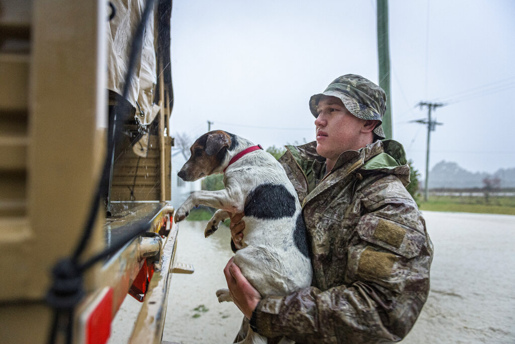 周日,另一名男子在试图将牲畜转移到安全地带时被从农场中冲走,随后被一名民用直升机飞行员救起。