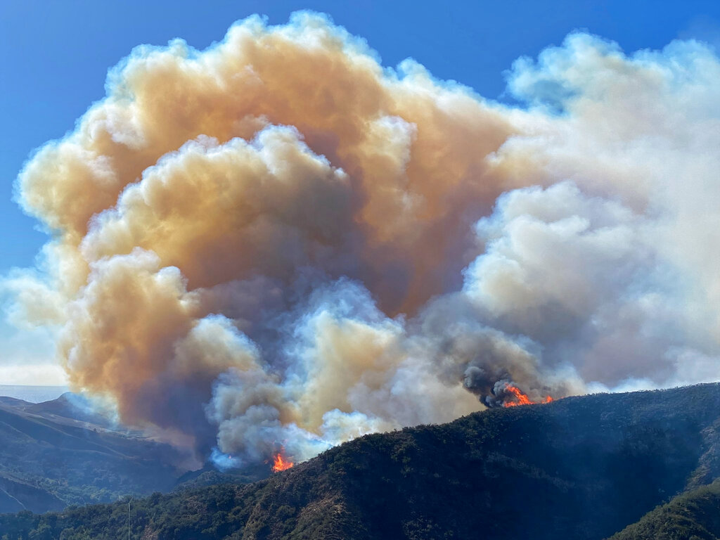 大火星期一在一个山脊上爆发,并向海洋蔓延,迫使该地区唯一的主要高速公路美国101公路关闭。在人口稀少的地区,疏散命令和警告已经到位。
